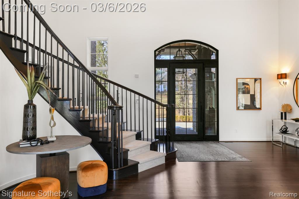 Set on 5.5 manicured acres minutes from downtown Franklin, this estate blends commanding architecture with a warm, modern sensibility. Offering over 11,000 square feet of living space, with a fully finished lower level, the home features 6 ensuite bedrooms and 7.2 bathrooms—crafted for grand-scale living and effortless entertaining. A soaring double-height foyer sets an elegant tone, flowing into the main living space where rich hardwoods and coffered ceilings anchor the open floor plan. The chef’s kitchen is a study in symmetry and functionality, fitted with Sub-Zero and Wolf appliances, custom cabinetry, and double oversized islands that connect seamlessly to the great room, where floor-to-ceiling windows frame serene views of the grounds. A richly paneled library with built-in shelving, a fireplace, and a dramatic arched window offers a private setting for work, reading, or quiet reflection. The rare first-floor primary suite offers a true sense of retreat. Designed with privacy and comfort in mind, it features dual walk-in closets and two completely separate spa-inspired bathrooms—each appointed with high-end finishes, custom vanities, and generous showers. A private balcony off the suite offers a tranquil vantage point to overlook the estate’s expansive acreage, creating a seamless blend of luxury and nature. Downstairs, the walkout lower level has been transformed into a lifestyle destination: a custom-built theater with 8K projection, a full sports court with new flooring, and an expansive living area with full kitchen. Outdoors, a fully resurfaced gunite pool, new mechanicals, and an extended patio provide the ideal backdrop for seasonal entertaining. Additional highlights include a Control4 smart home system, new full-home generator, five furnaces with corresponding AC units, an attached 4-car garage, and so much more. This is a legacy-caliber offering—sophisticated, bold, and completely turnkey. |